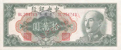 در سال‌های ۱۹۴۹-۱۹۴۸، جمهوری چین به دلیل جنگ چین و ژاپن و جنگ داخلی با ابرتورم شدید روبه‌رو بود. یوآن قدیمی به‌شدت بی‌ارزش شد، چون برای پوشش هزینه‌های سنگین نظامی، اسکناس به مقدار بسیار زیادی چاپ می‌شدند.
